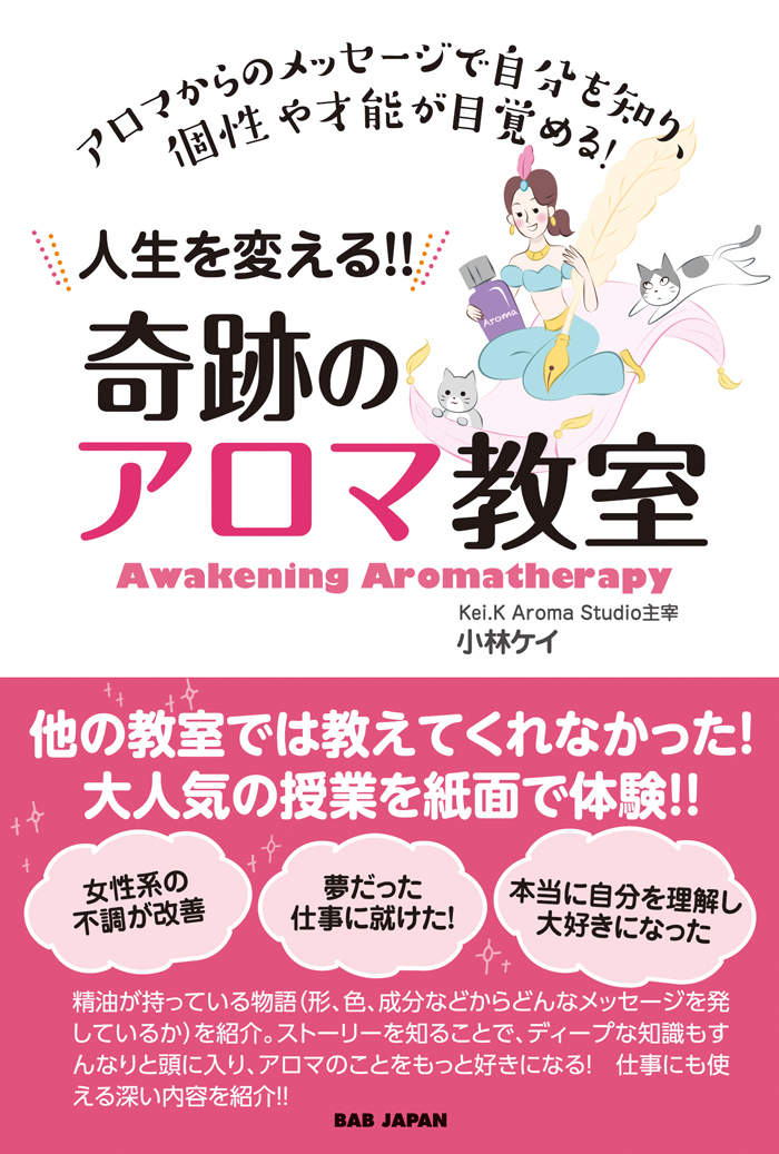 「実は私は、アロマセラピーと出合う前からラベンダーの香りが大の苦手。その感覚が大きく変わったのは、その後、アロマ学科の講師として初めてレッスンをした日。あれほど苦手だった香りが、このうえなく心地よく響いてきたのです。香りが変わったわけではありません。変わったのは、新しい人生のステージに立った私自身にほかなりません。大きな人生の節目には、嫌いだった香りが「大好き!」に変わることさえあることを、私は身をもって実感しました。香りは私たちを自然と俯瞰の視点へ導き、目の前の出来事を違う角度から見せてくれる――その瞬間、氣づきが訪れるのです。」 小林ケイ(啓泉)