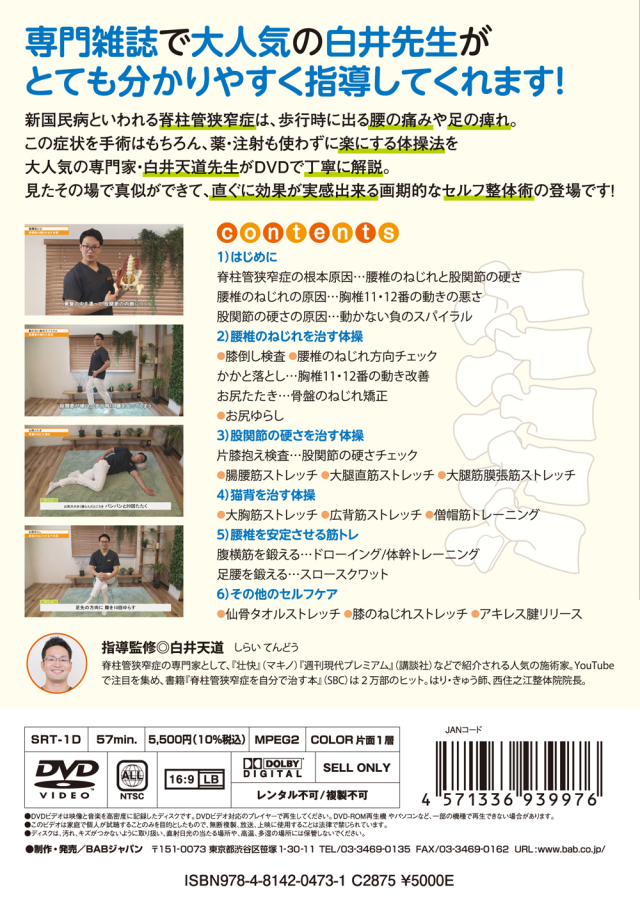脊柱管狭窄症の改善と予防を目的とした体操法を丁寧に収録。